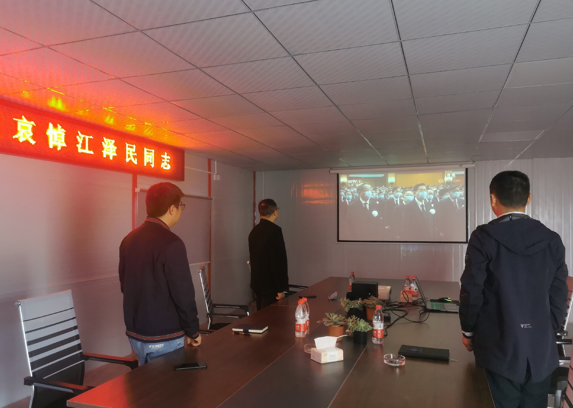 中南建设集团机关全体干部职工肃立默哀3分钟后,全程集中收看追悼会现场直播,深切缅怀江泽民同志的丰功伟绩和崇高风范,寄托心中的哀思。
