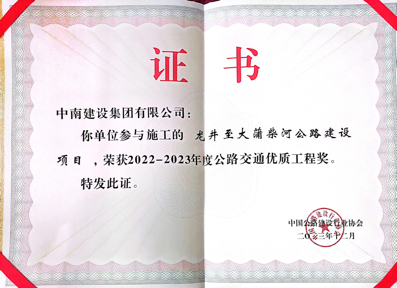 载誉而归!中南建设集团两项工程荣获中国公路建设最高质量奖——“李春奖”