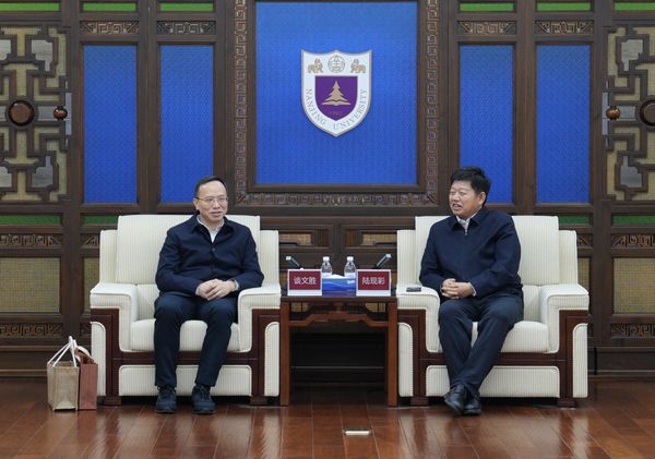 谈文胜与南京大学副校长陆现彩举行会谈,双方就深化校地合作、共育地质人才、联合科技攻关等达成共识。