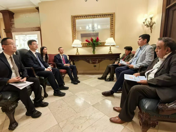仪式结束后,谈文胜与秘鲁能源和矿业部、地质采矿与冶金研究所、矿业咨询企业代表,就矿产勘查开发、环境保护、科技攻关等议题进行了深入交流,以期凝聚合作共识,探索共赢路径。