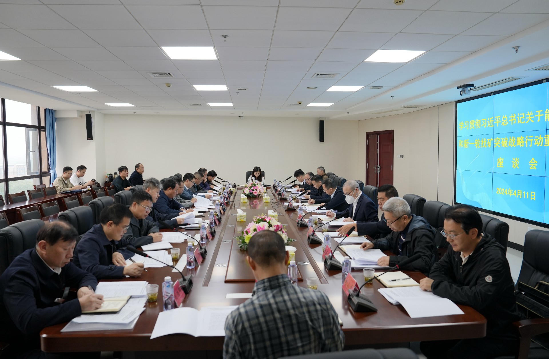 4月11日,省地质院在矿调所召开学习贯彻习近平总书记关于能源资源保障和新一轮找矿突破战略行动重要指示批示座谈会。院党委书记谈文胜出席并讲话,会议由院党委委员、总工程师曹幼元主持。