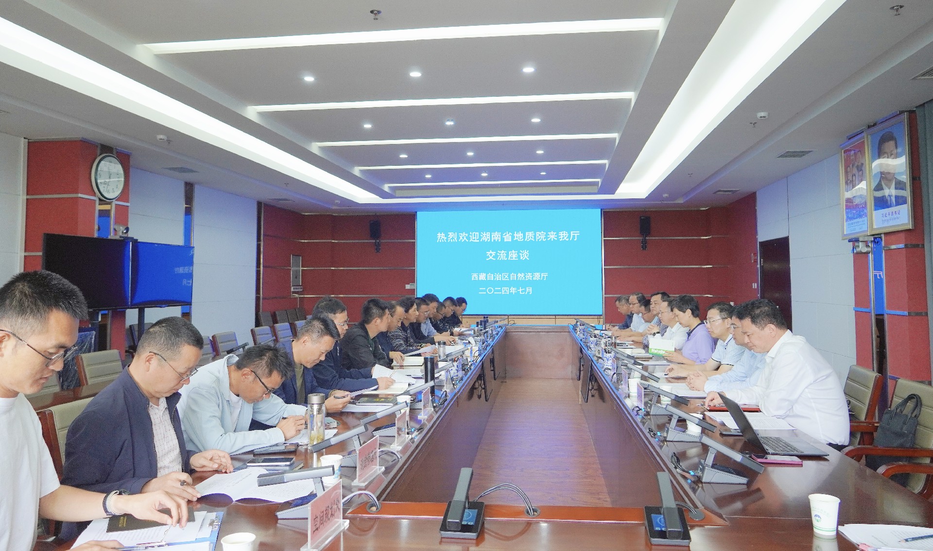 为深入学习贯彻落实习近平总书记关于西藏工作和湖南工作的重要指示批示精神,7月16日,湖南省地质院党委书记谈文胜带队赴西藏自治区与西藏自然资源厅、地质矿产勘查开发局、林业和草原局开展座谈交流。西藏自然资源厅党组成员、副厅长次仁央宗主持座谈会,西藏地勘局局长张焕彬、西藏林草局二级巡视员伦珠次仁、湖南省地质院党委委员、副院长刘凤娟、湖南省地质院一级巡视员王伟华参加。