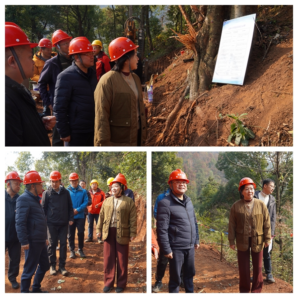 张皓一行听取了省地调所关于楠木冲锰矿详查项目安全生产和勘查阶段性成果的情况汇报。在施工现场,张皓详细检查安全生产情况,查看岩芯,了解现阶段的找矿成果,听取项目组下一步工作的打算,指出既要确保项目如期完成目标任务,又要确保人员安全。在钻探机台上察看施工环境、施工质量和安全状况,详细了解项目组在勘查过程中可能产生的安全问题,对安全生产进行现场指导,她强调,要预防电火风险,严格限制火种进入,确保每一个用电环节符合规范,为项目筑牢坚实的用电安全屏障;要警惕滑坡隐患,通过定期巡查、专业勘测等手段,提前识别潜在的滑坡风险点,并采取有效的加固和防护措施;要防止干扰居民生活,及时了解居民的诉求和意见,积极回应居民关切,主动化解可能出现的矛盾和问题,营造和谐的项目建设氛围。